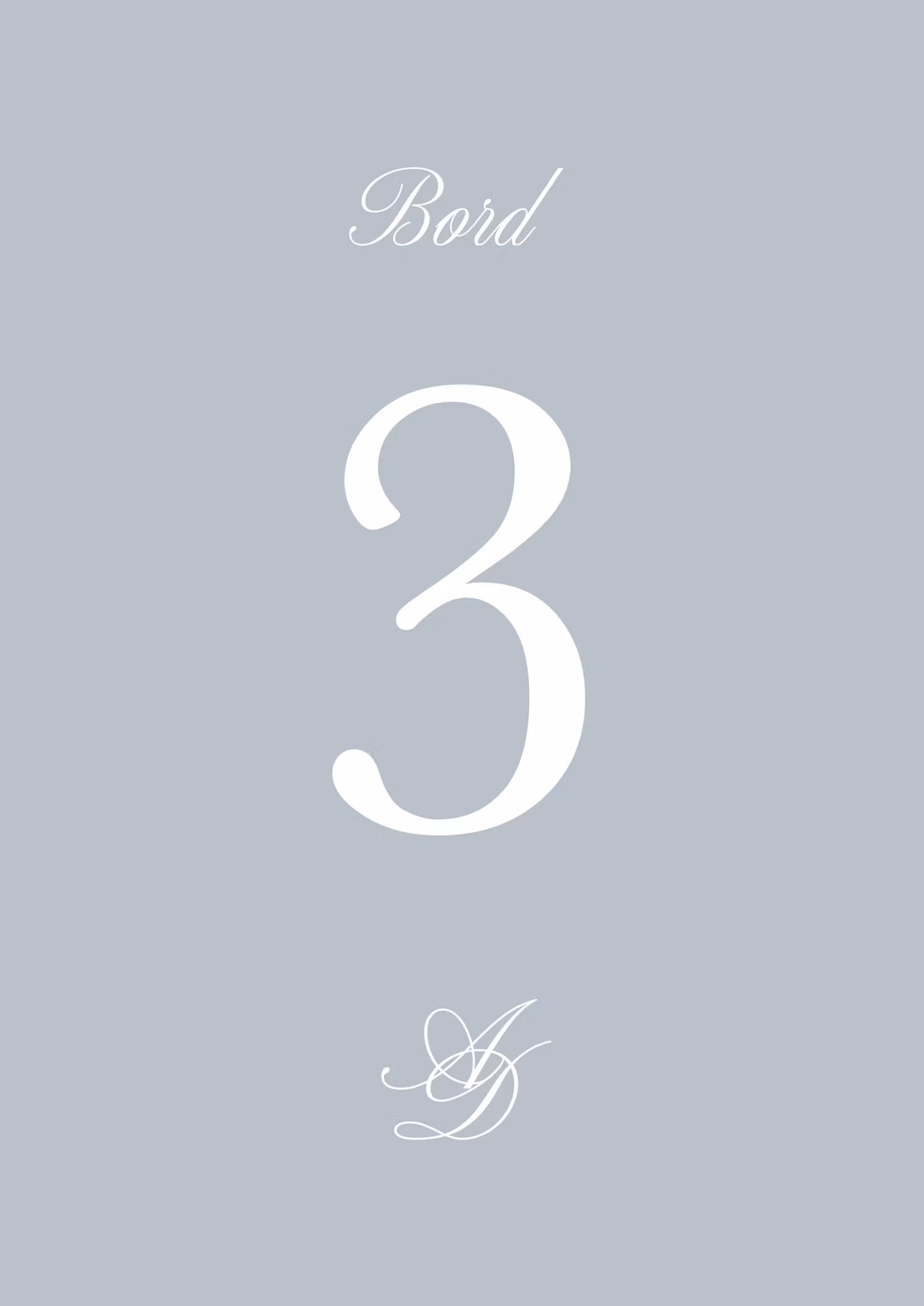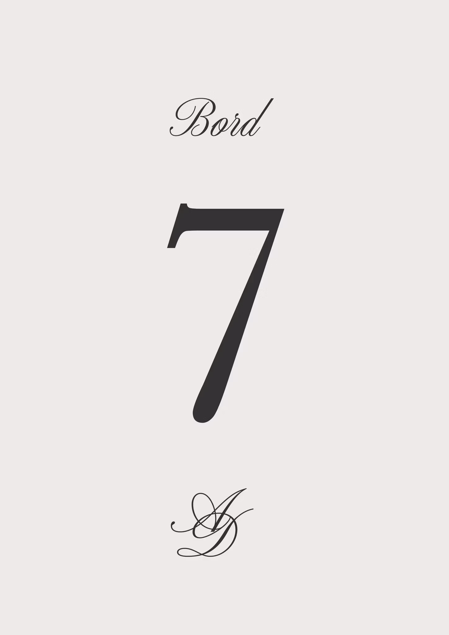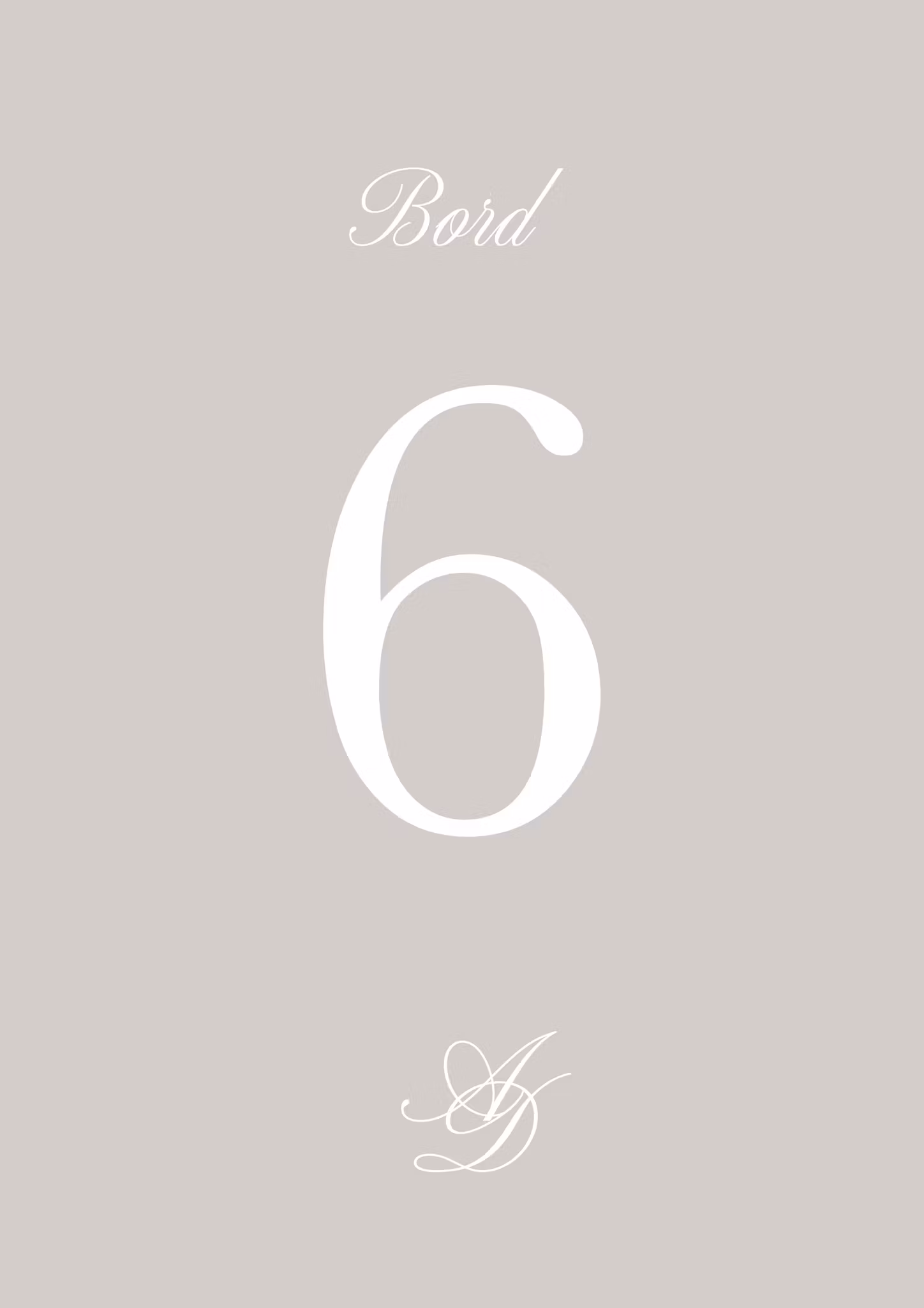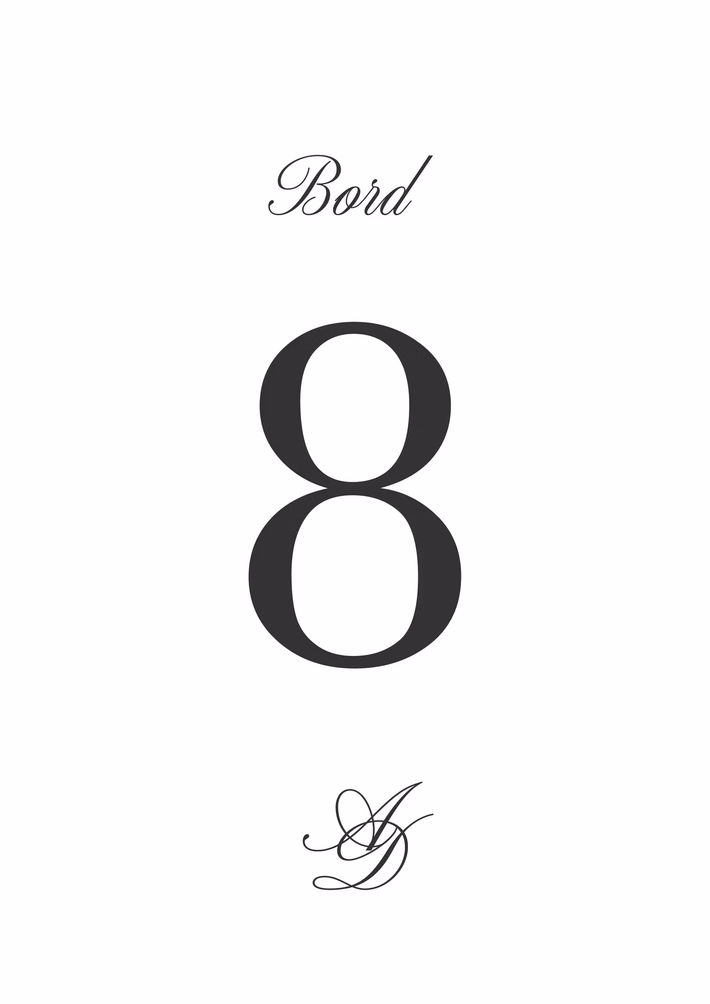 Välkomna era gäster till bords med tydliga och vackra bordsnummer. Sätt dom i vackra ramar, sätt i hållare eller knyt fast i buketten på bordet. Dessa bordsnummer går att få antingen i storlek A6 eller A5. Skyltarna trycks på matt premiumpapper.
