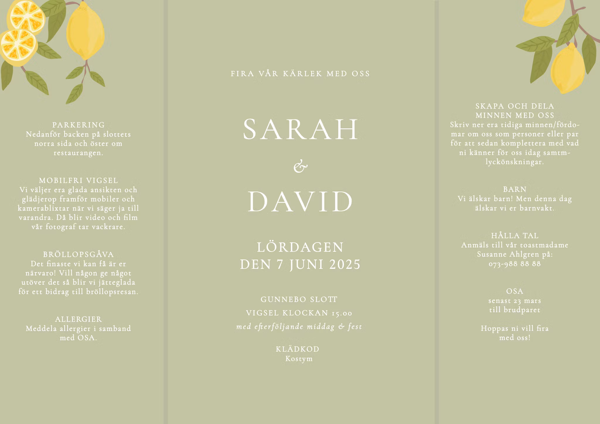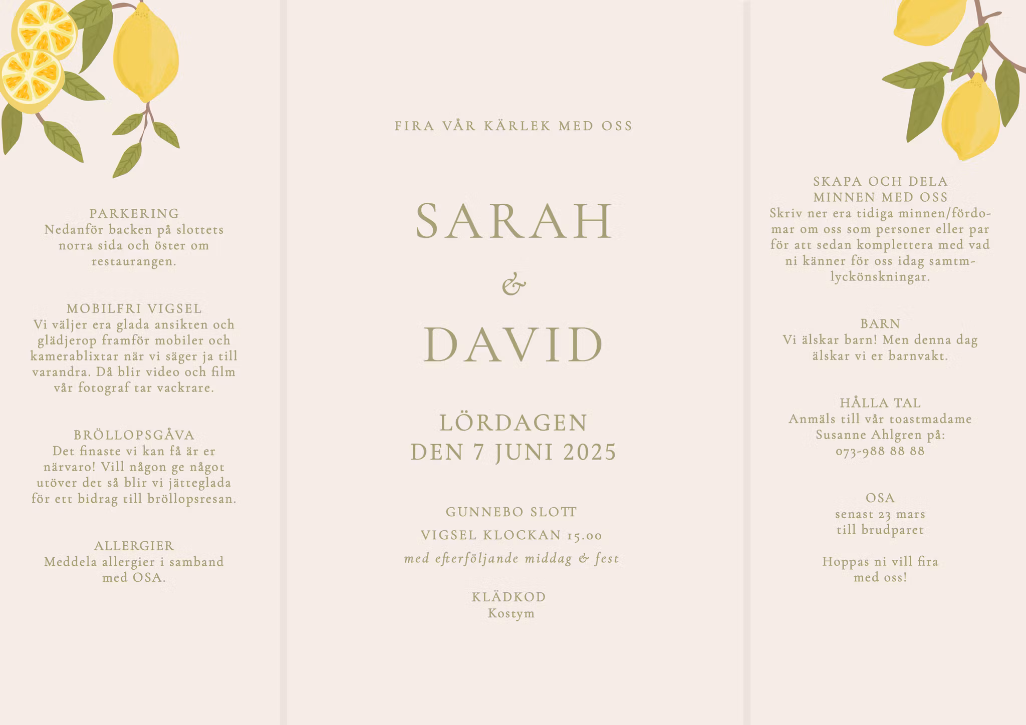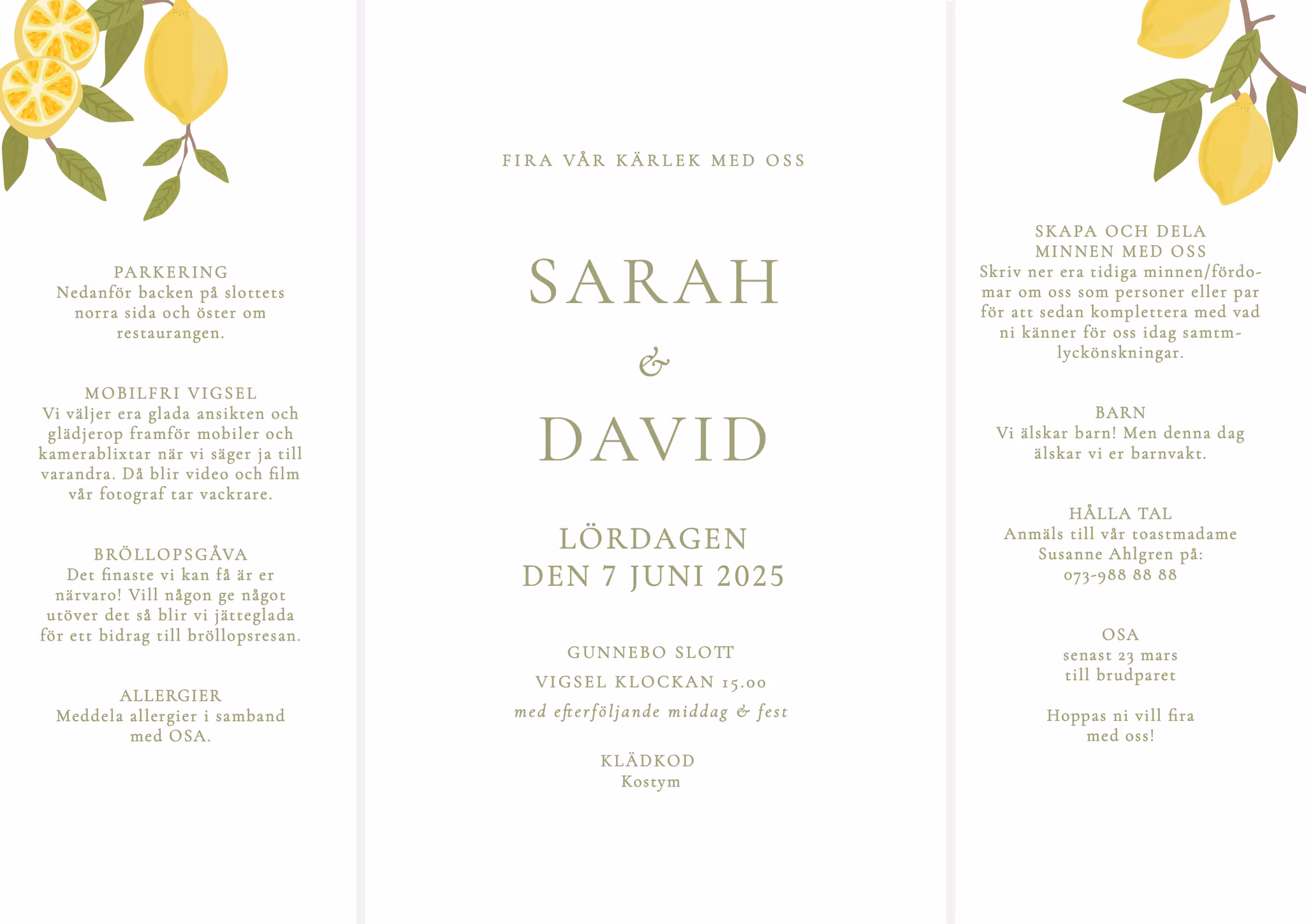 Inbjudningskortet trycks på matt premiumpapper. Storleken är A4 (21x30 cm) uppvikt och A5 (15x21 cm) ihopvikt och passar kuvertstorlek C5.