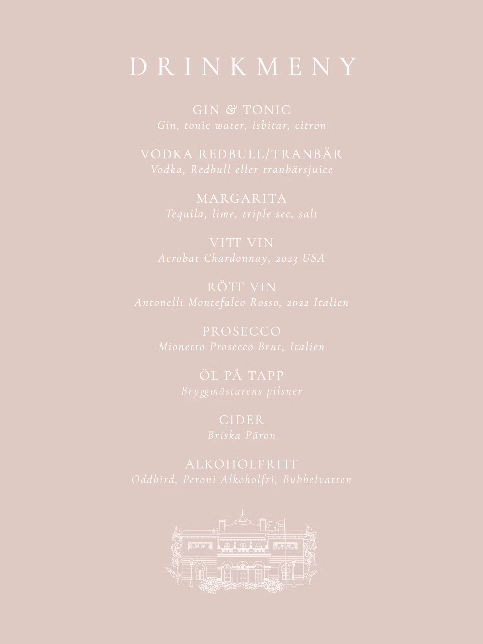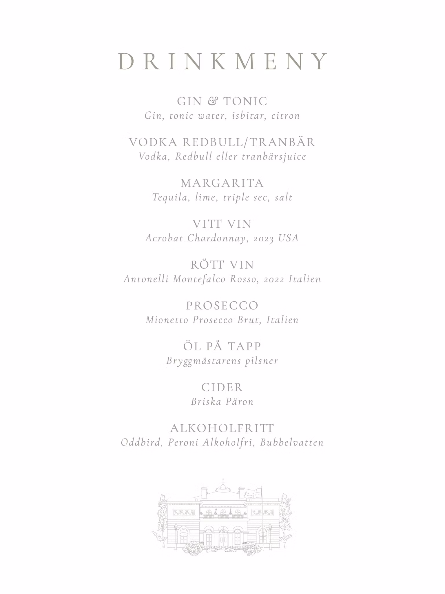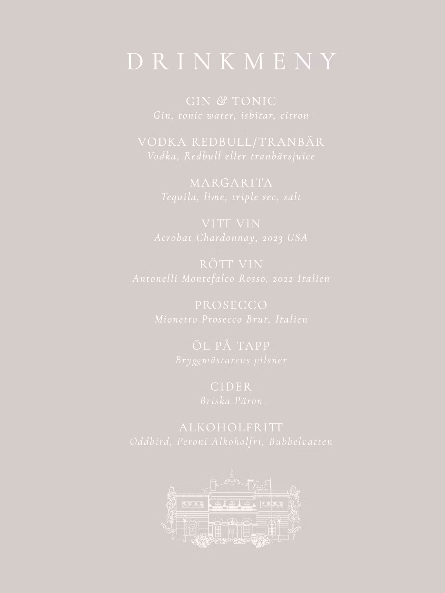 Låt illustrationer på era signaturdrinkar för kvällen pryda på denna drinkskylt! Det blir både dekorativt och informativt för gästerna när dom ska bestämma vilken drink dom är sugna på för kvällen. Skylten går att beställa i storlekarna 21x30 cm (A4), 30x40 cm eller 30x42 cm (A3) och trycks på matt premiumpapper.