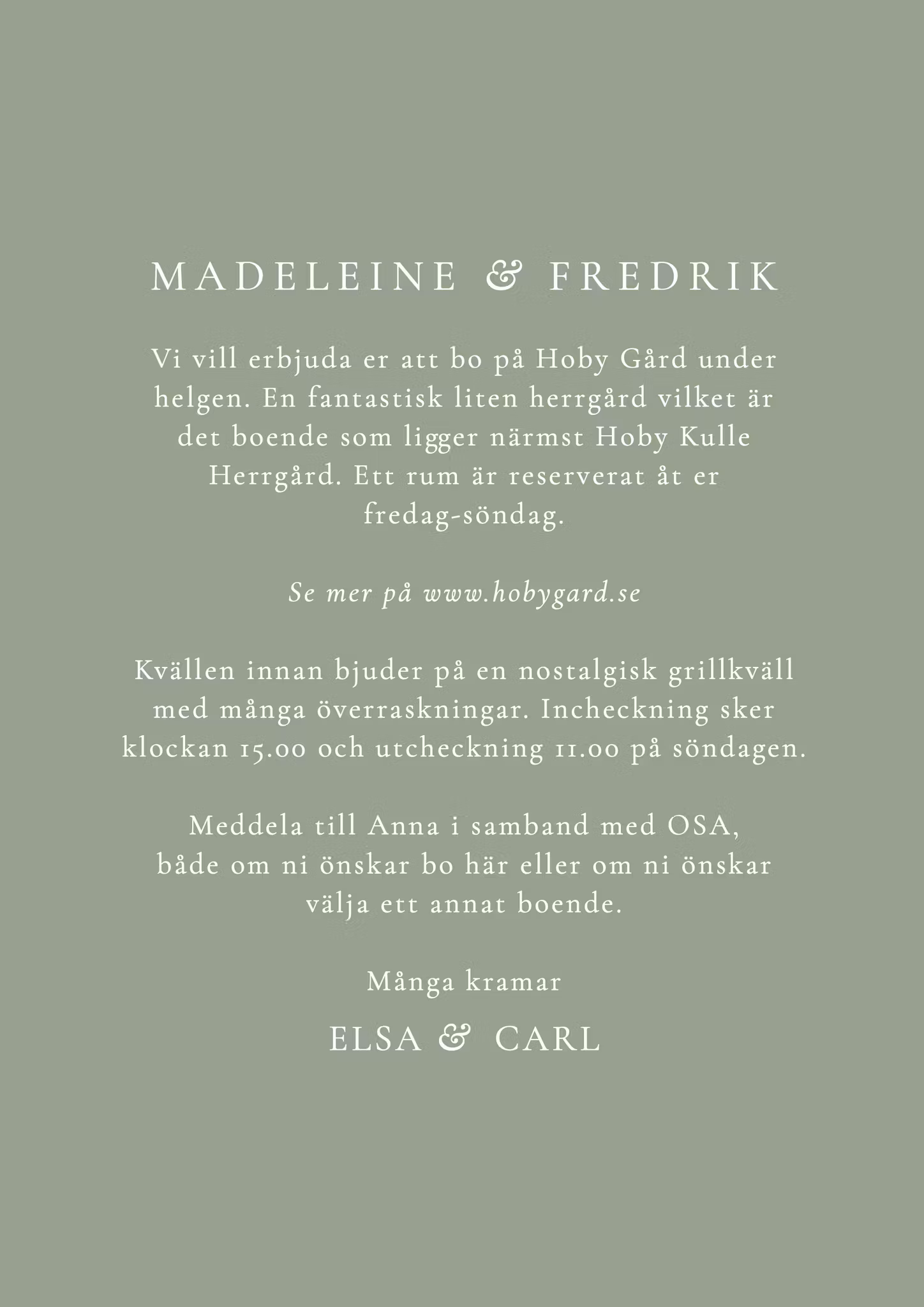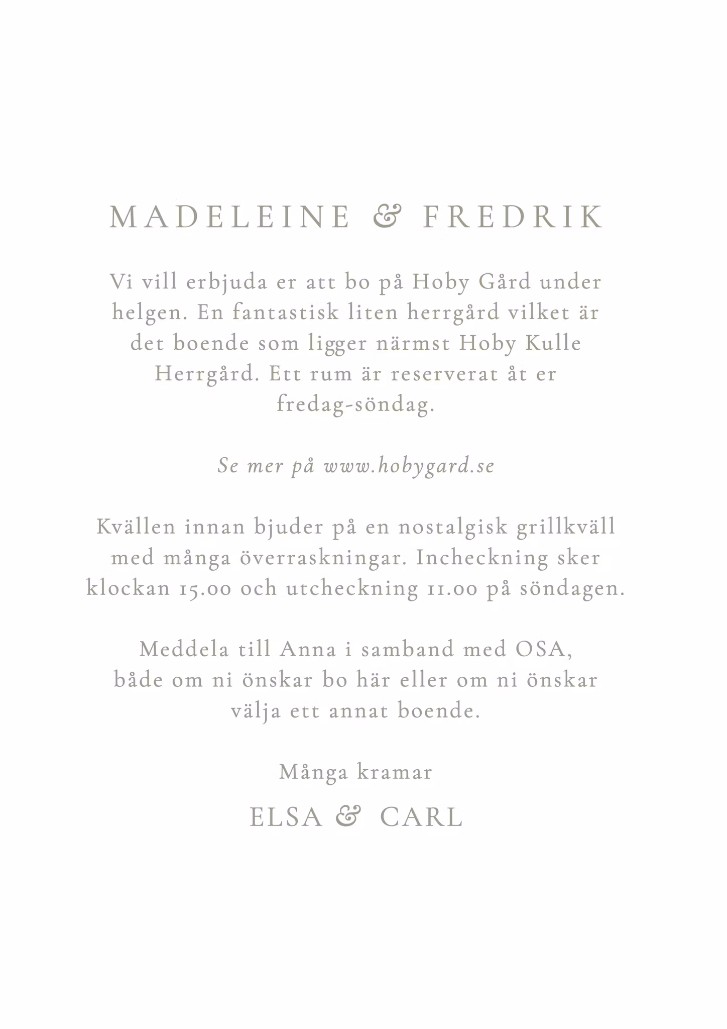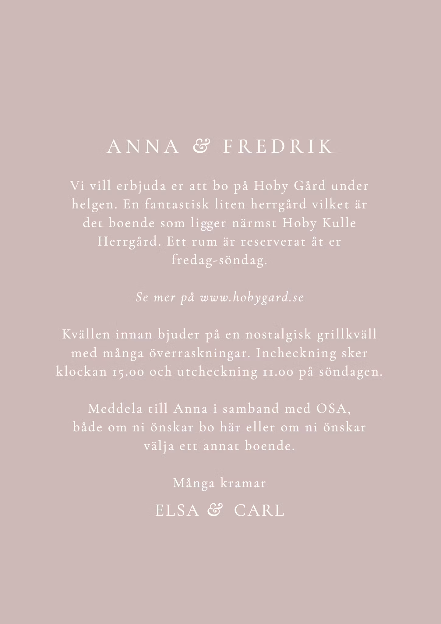 Har ni kanske en rolig kväll planerad för endast brudföljet kvällen innan? Beställ till ett extra kort och lägg tillsammans med inbjudan!