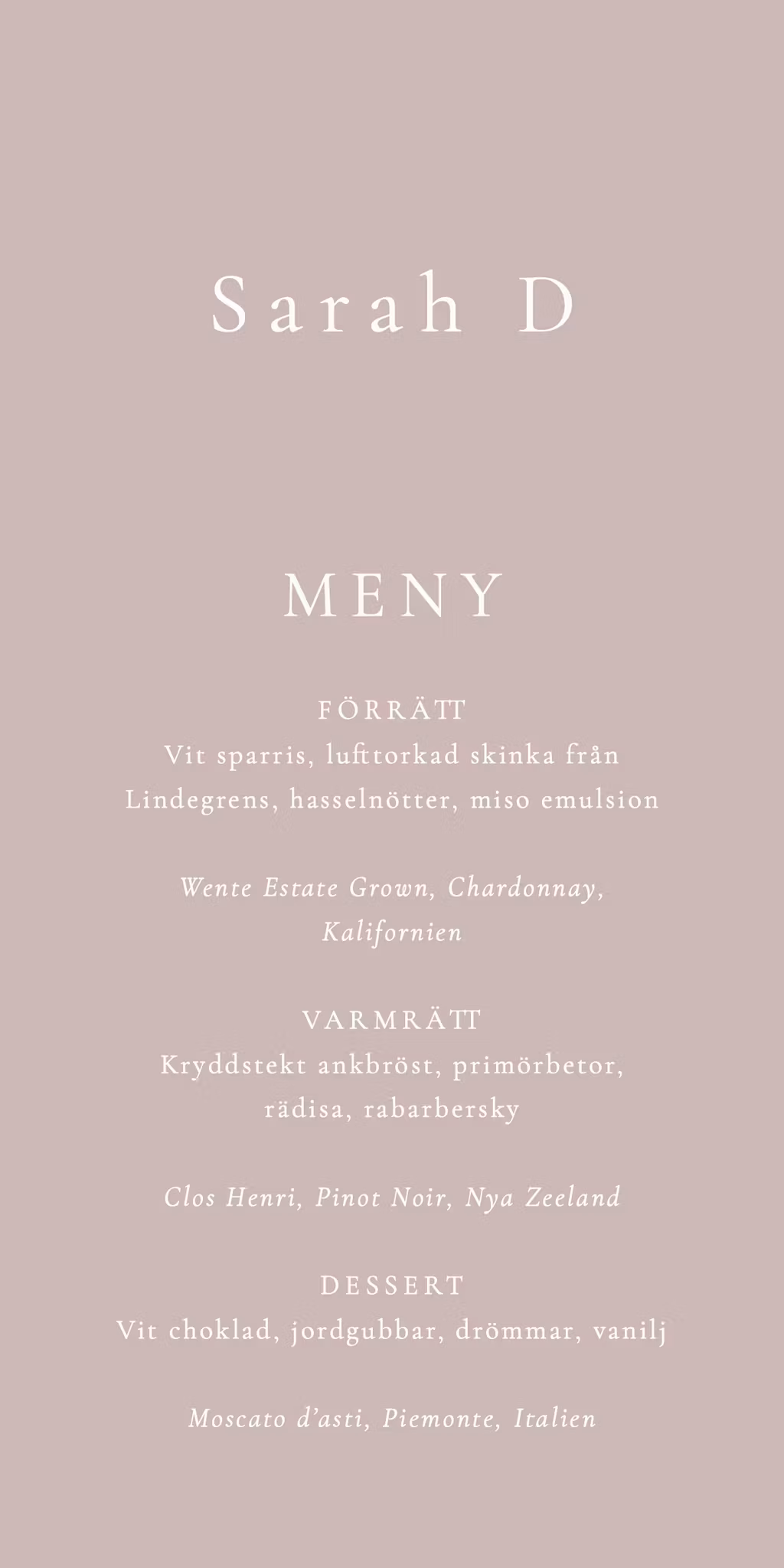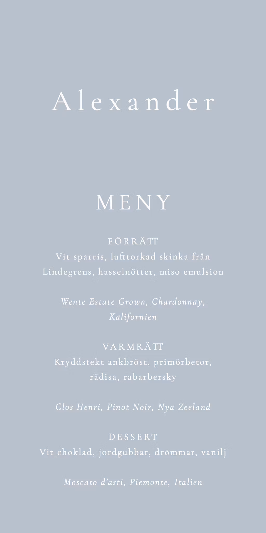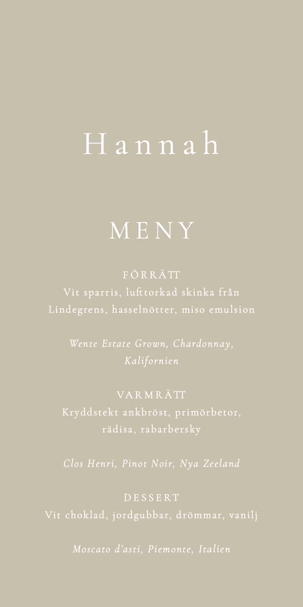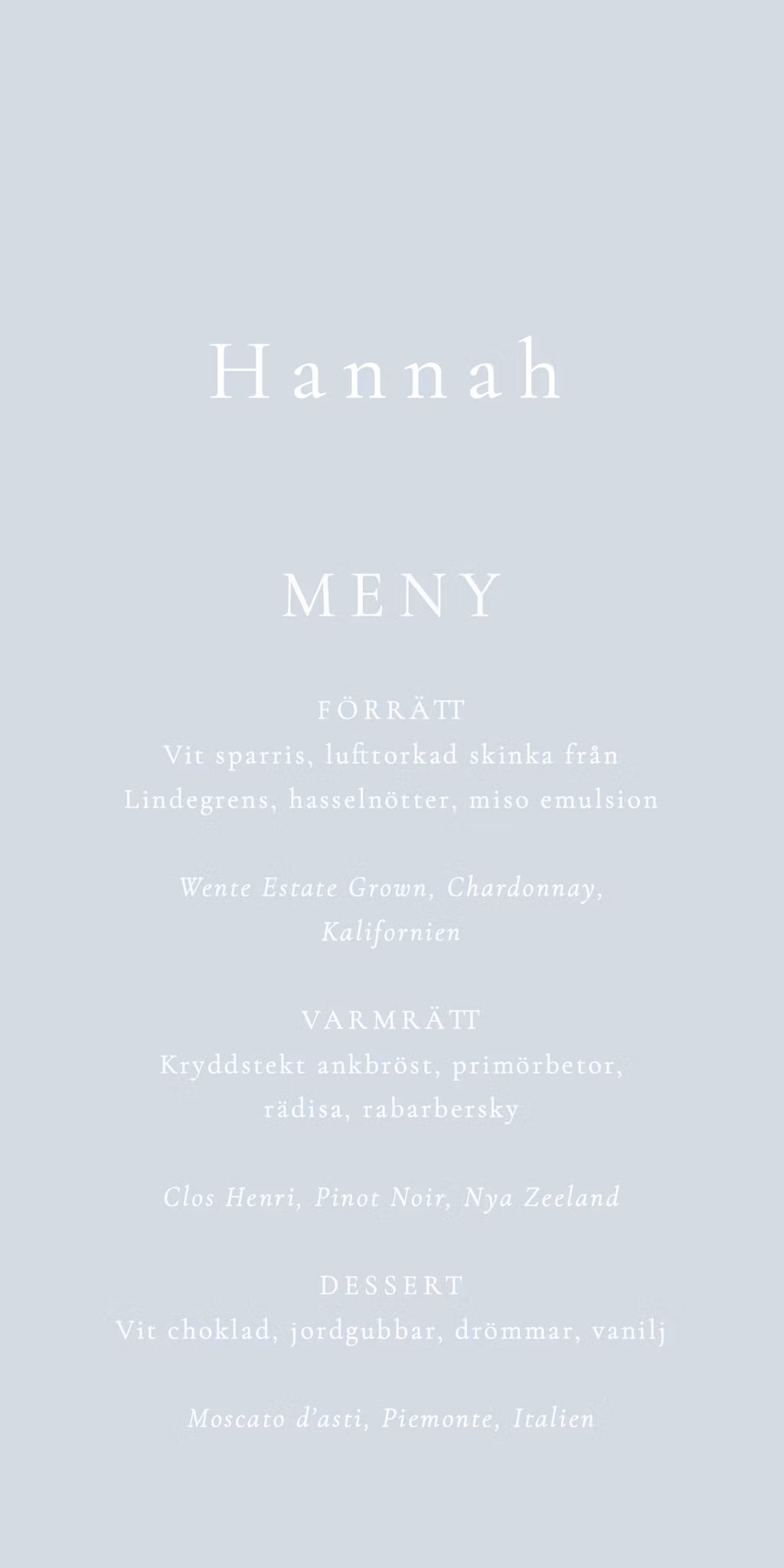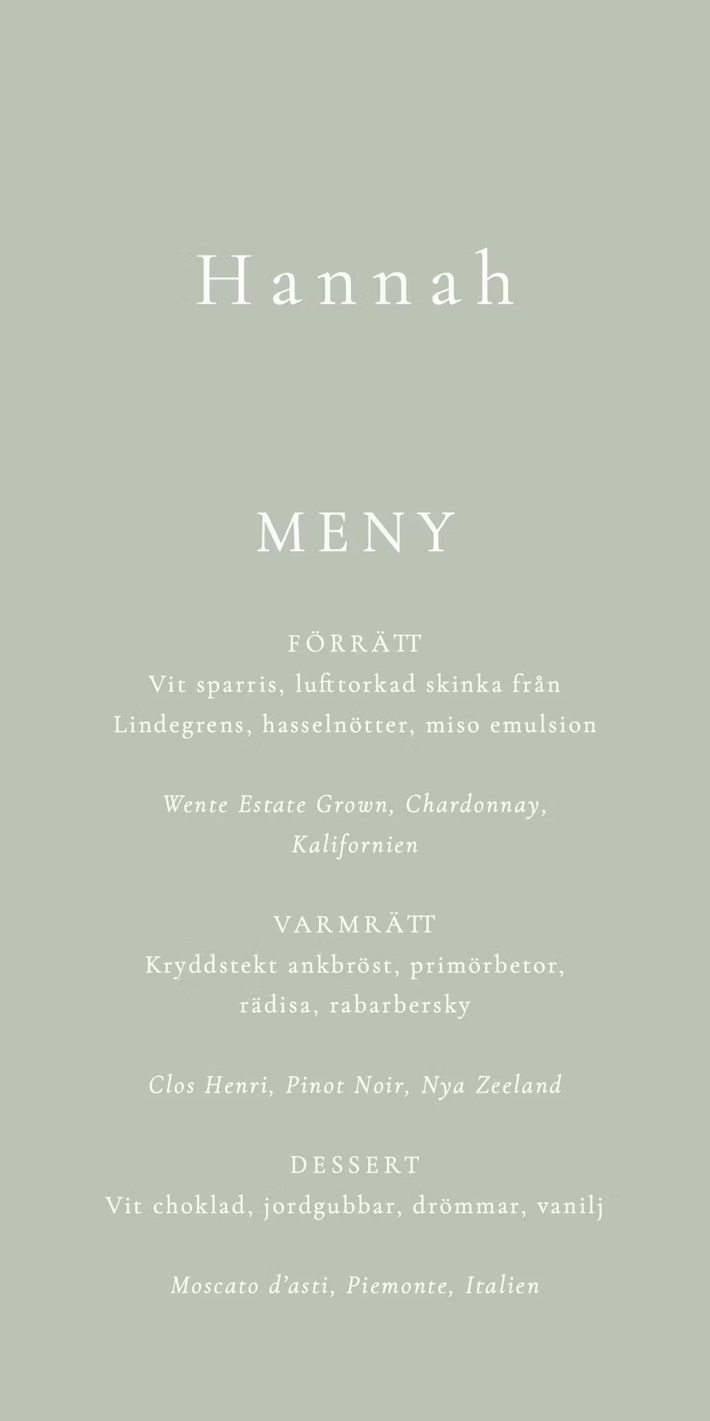 Dekorera dukningen med vackra menykort. På denna meny så trycks även gästens namn högst upp på menyn. Menyerna trycks på matt premiumpapper i storlek 10x21 cm.