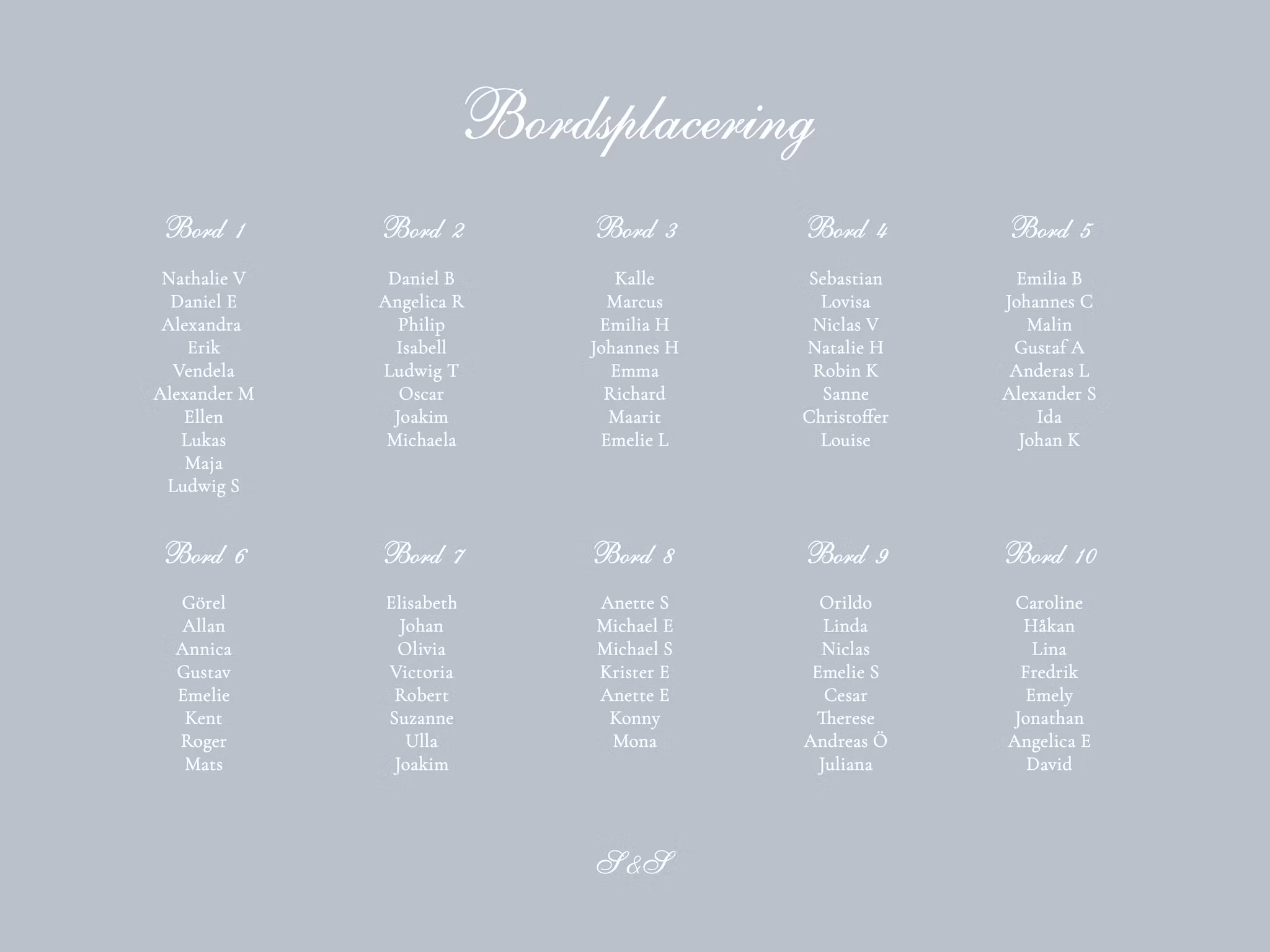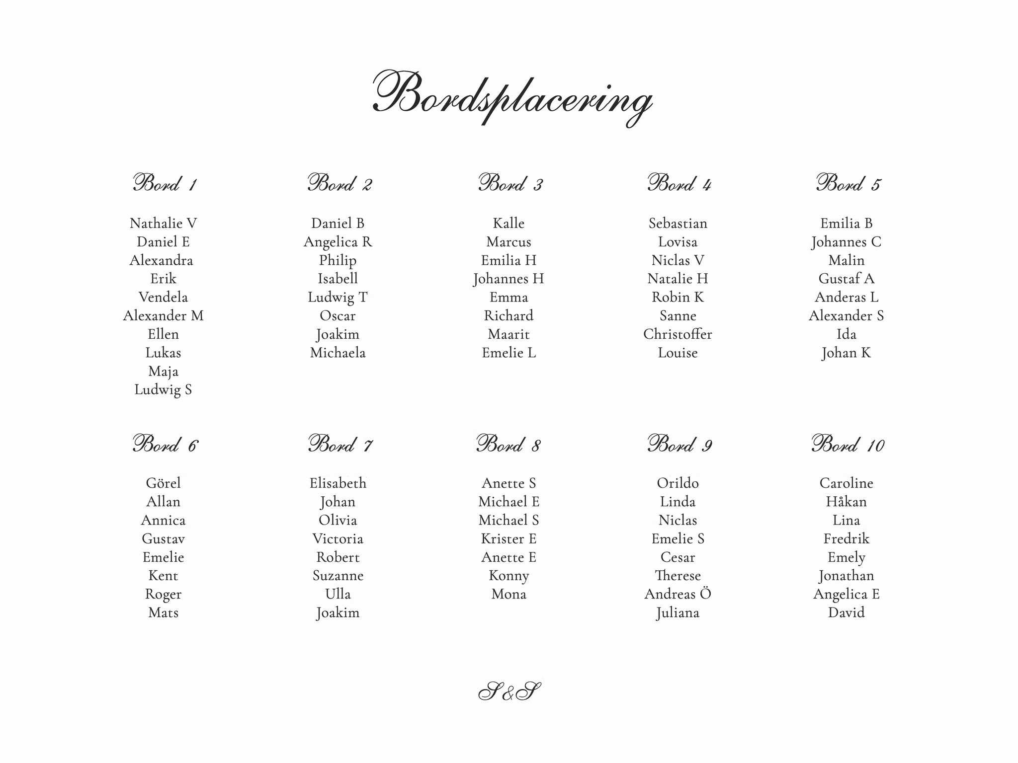 Välkomna era gäster till bords med en tydlig och dekorativ bordskarta. Välj att ha skylten liggande eller stående. Skylten trycks i storleken 30x40, 30x42 (A3) eller 50x70 cm på matt premiumpapper. Tillverkningen sker i Sverige.