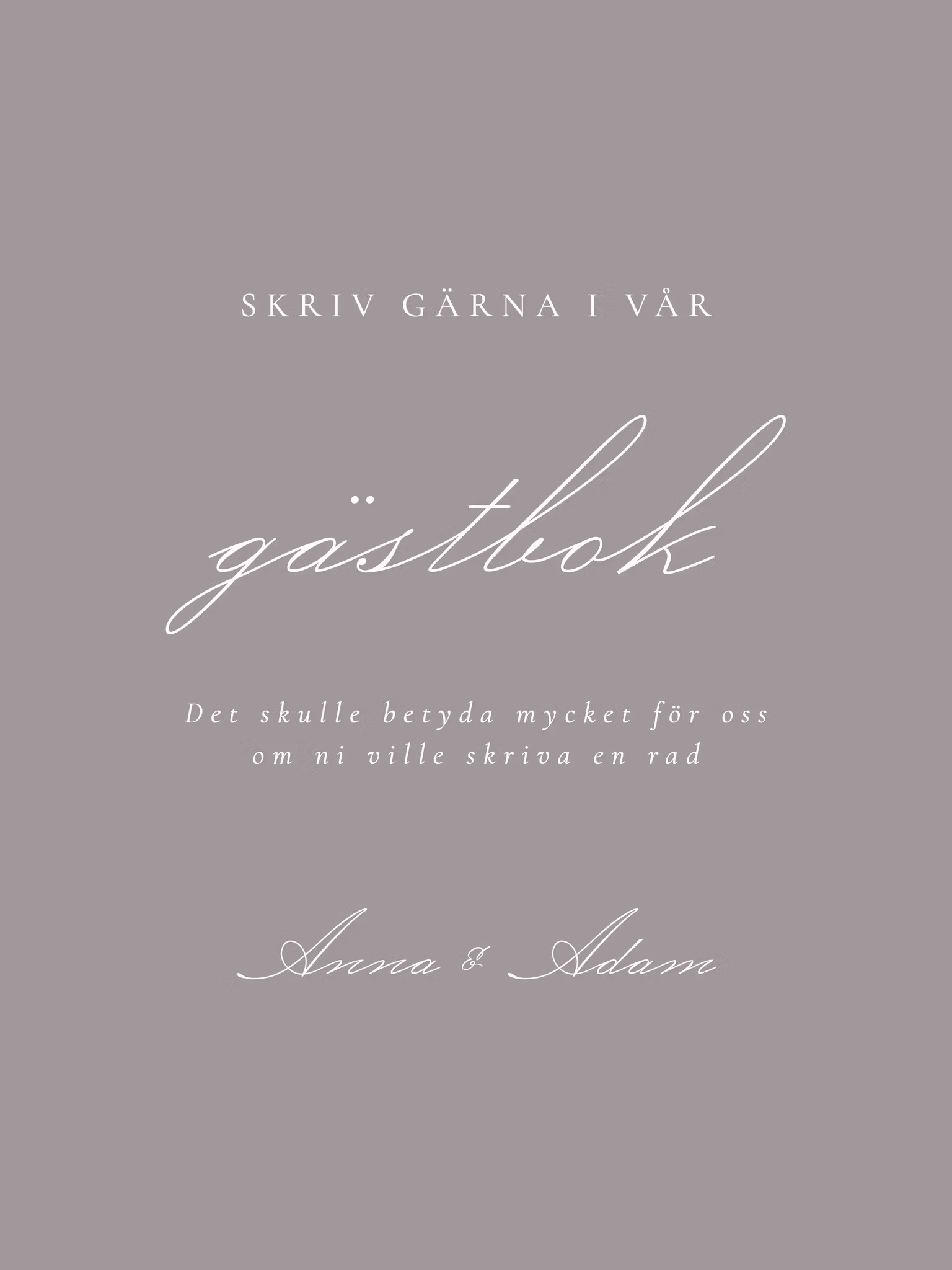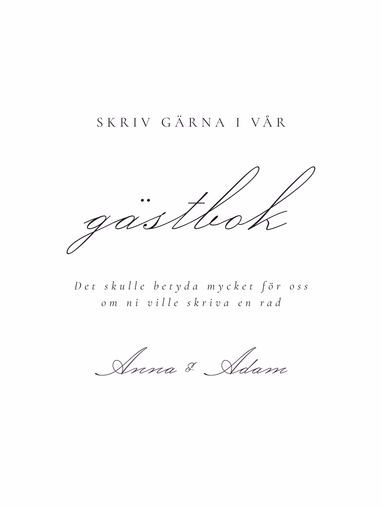Låt era gäster skriva en rad i en gästbok, använd kameror eller ett personligt brev som minne av bröllopsdagen. Ett roligt minne att spara och en rolig stund för brudparet att titta igenom efter bröllopsdagen. Med tydliga skyltar så kan inte gästerna missa detta roliga tillfälle! Skylten går att beställa i storleken 21x30 cm (A4) och trycks på matt premiumpapper.