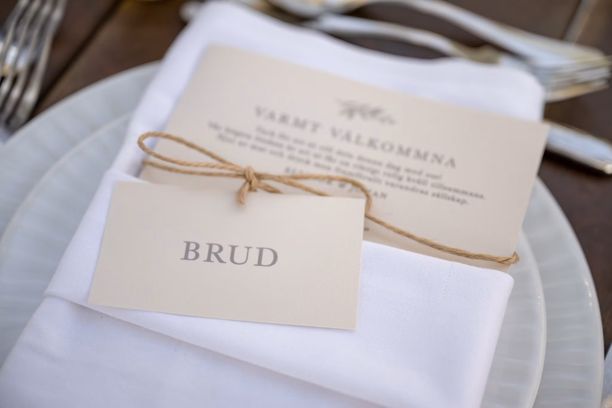Placeringskort till bordet kan vara bra att ha så att alla hittar till sin plats snabbt och smidigt. Låt placeringskorten gå i samma enhetliga form som inbjudningskortet eller menyerna. Fin detalj att fästa i samma band som menyn. Placeringskorten trycks i storlek 10x5 cm på matt premiumpapper. Du kan välja att få placeringskortet enkelsidigt eller dubbelsidigt (som står upp själv på bordet).