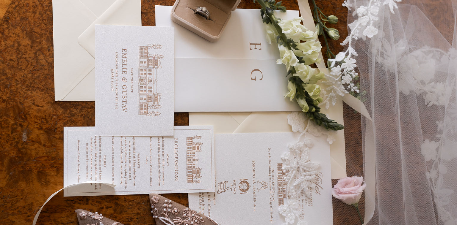 En bröllopsinbjudan är den första glimten era gäster får av er stora dag