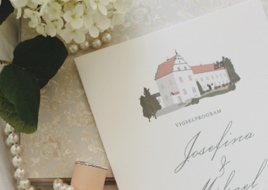 En personlig drinkmeny, bordsplaceringskarta eller festprogram? Sätt stilen och låt era på-dagen-saker gå i samma stil som era Save the dates och bröllopsinbjudningar.